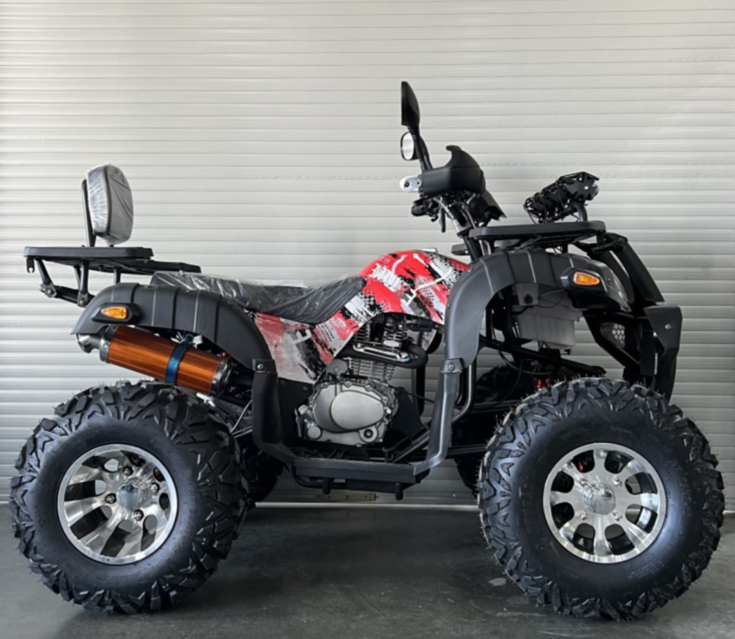 Квадроцикл оснащен двигателем 161 QMK на 200 см3 c воздушно-маслянным охлаждением и автоматической коробкой передач с реверсом, дисковыми тормозами, ручным и электростартером.