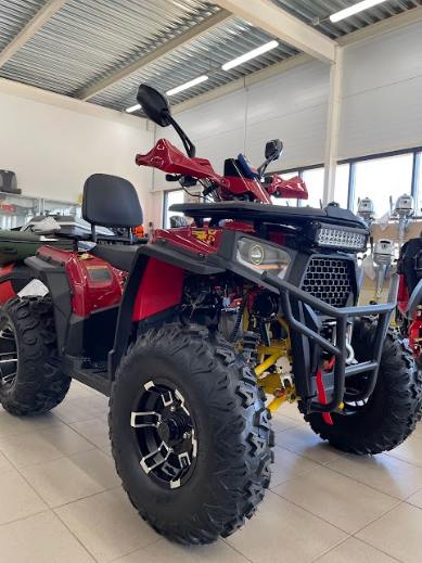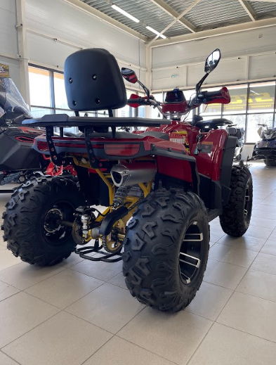 Регулируемая по жесткости передняя и задняя подвеска, надежная КПП с удобным рычагом переключения передач (F-N-R) в верхней части квадроцикла, а также максимально тяговитый и мощный 4-х тактный двигатель делают этот аппарат одним из лучших на рынке.