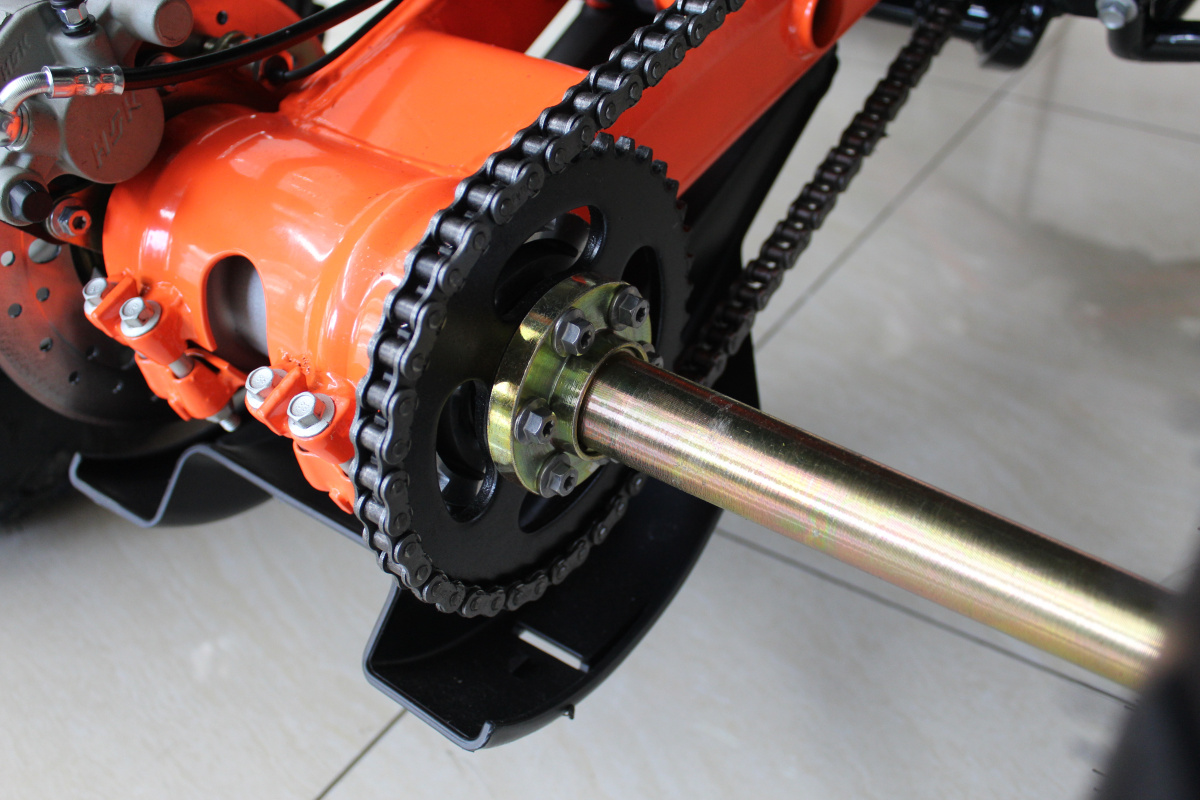 Крутящий момент 4-х тактного двигателя передается на здание колеса при помощи цепной передачи, используется самая надежная цепь SFR 530!