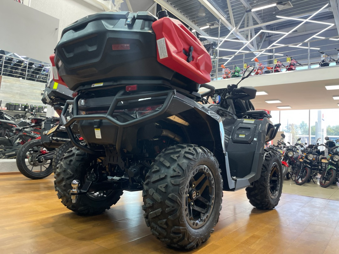 Квадроцикл оснащён современным мощным и экономичным инжекторным двигателем с системой впрыска Bosch EFI, а плавный и выносливый вариатор CVTech (Канада) обеспечивает отличные динамические характеристики. Электронное управление газом с выбором режимов езды позволяет настроить квадроцикл под различные условия.
