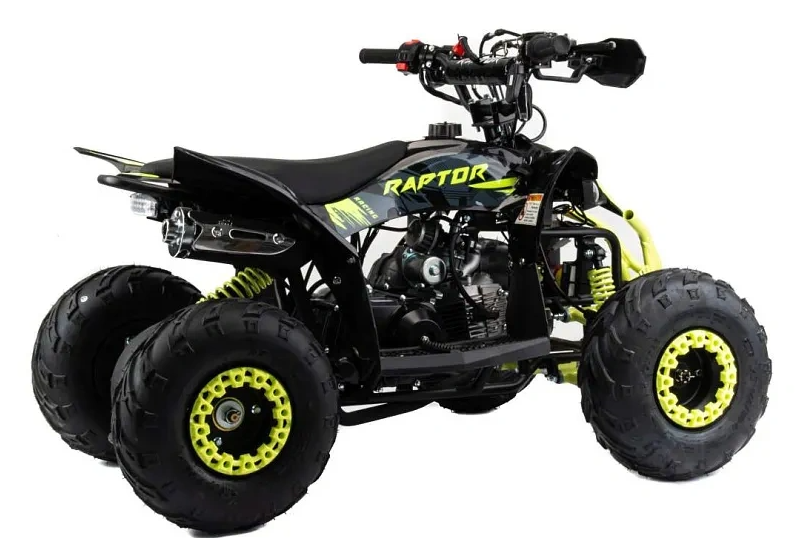 Квадроцикл Motoland 110 RAPTOR A cтильный, современный, квадроцикл подойдет вашему ребенку как мальчику, так и девочке. Его спортивный дизайн разработан с учетом вкусов современного поколения и понравится всем без исключения.