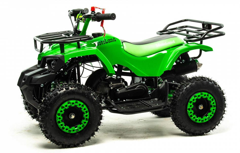 В комплектации 50-кубового мини-ATV, двухтактный 50-кубовый двигатель, замок родительского контроля и яркий, прочный, монохромный пластик.