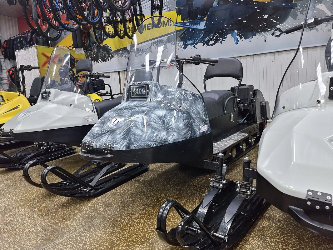 На миниснегоход установлено полутора местное сиденье снегоходного типа.