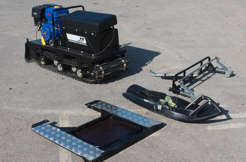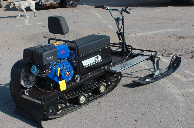 Модель оснащена широкой гусеницей 500 мм, установленной сзади, как в любом классическом мотобуксе. Гусеница выполнена на основе резинотканевого материала, который обладает повышенной стойкостью к повреждениям. Высота грунтозацепа составляет 25 мм.