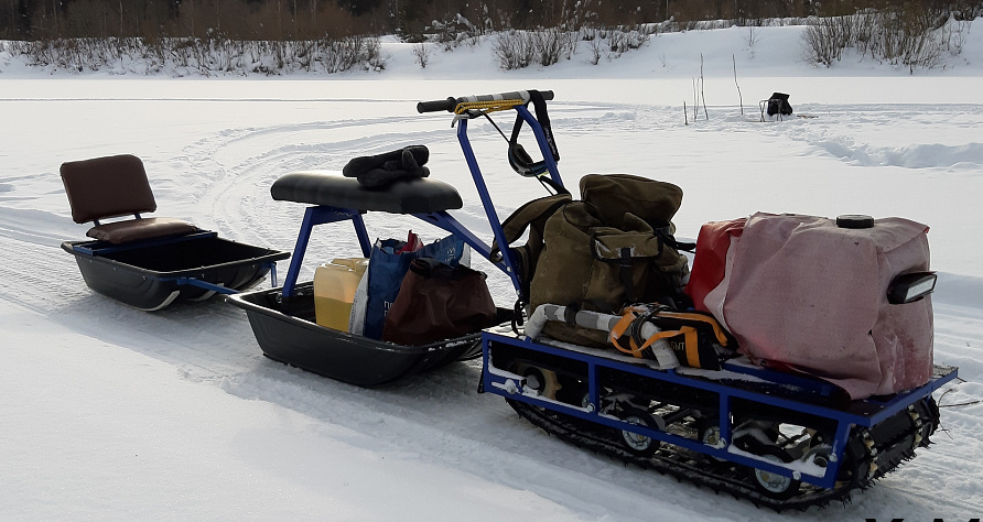 Лучшая проходимость при своих габаритах благодаря тому, что вес водителя распределен между санями и буксировщиком;