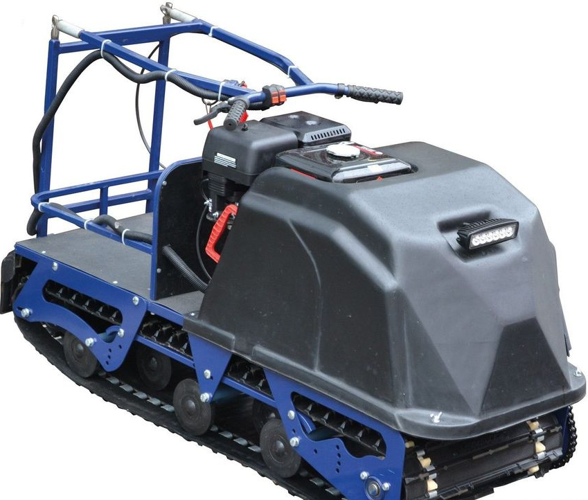 Гусеница «Барс» в сочетании с катковой подвеской позволяет эксплуатировать мотособаку на льду и при отсутствии снега. Руль расположен у основания рамы делает машину максимально управляемой, маневренной и удобной для пользователя.