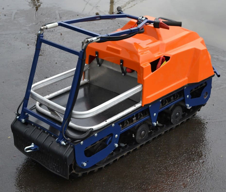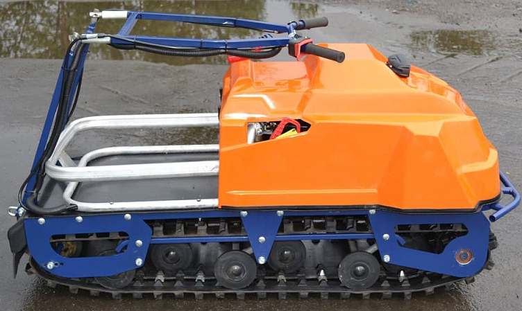 Гусеница «Барс» в сочетании с катковой подвеской позволяет эксплуатировать мотособаку на льду и при отсутствии снега. Руль расположен у основания рамы делает машину максимально управляемой, маневренной и удобной для пользователя.