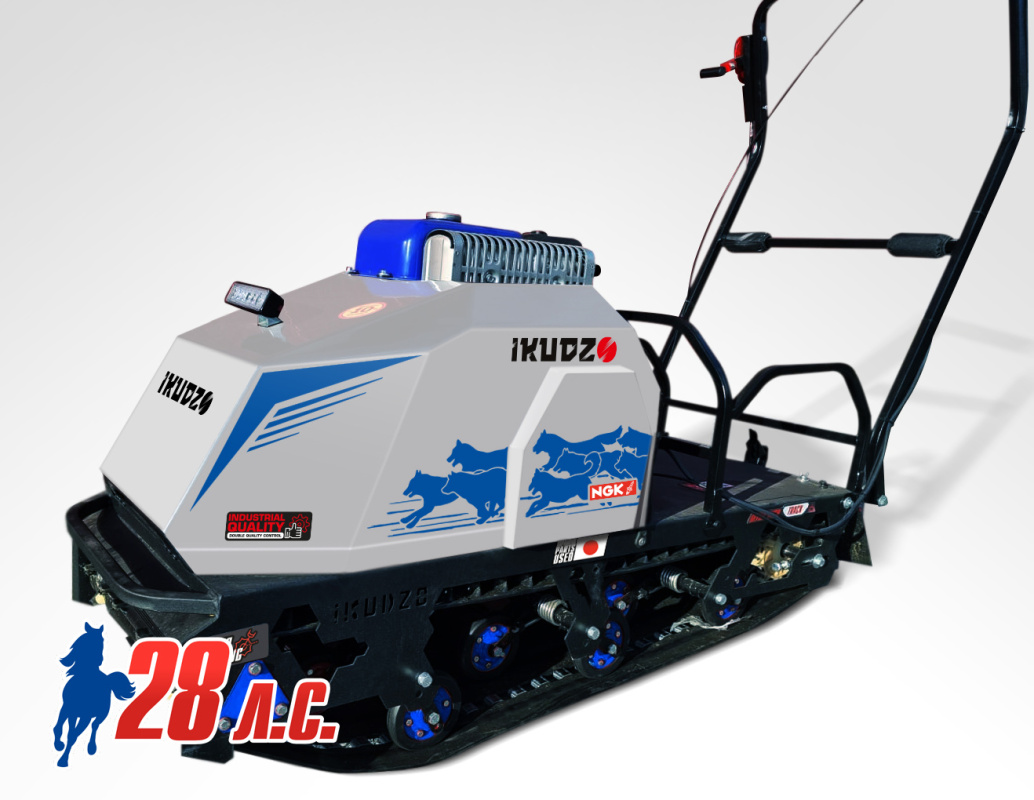 Модернизированные ДВС IKUDZO выдают порядка 28л.с, увеличены максимальные обороты, что привело к значительному приросту мощности и скорости без увеличения веса мотобуксировщика!