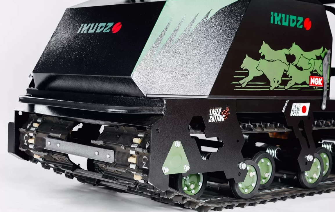 3. Рама шириной 700мм, создана благодаря результатам тестов лаборатории «ВНИИ-ТЕСТ». Увеличение рамы, позволило более равномерно распределить вес и нагрузку на снежную поверхность, что феноменально улучшило управление и проходимость мотобуксировщиков IKUDZO.