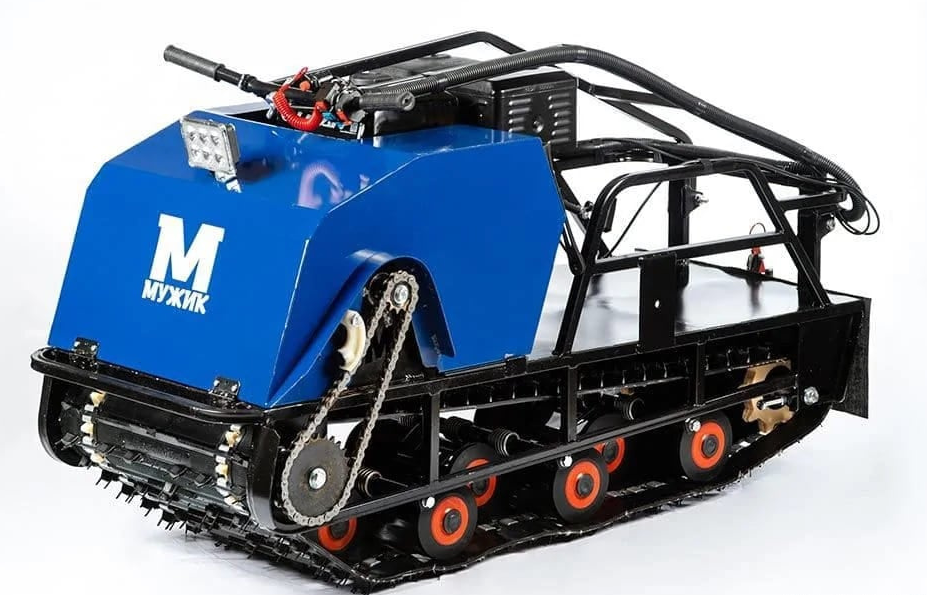 Данный мотобуксировщик изготовлен из доступных запчастей, большинство из которых можно найти практически в любом магазине мототехники или по продаже снегоходов. Конструкция мотобуксировщика, такова, что демонтаж большинства узлов и деталей происходит без снятия других деталей.