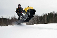 В конструкции мотовездехода используется цельная резиновая гусеница Composit шириной 500 мм. Гусеница в сочетании с катковой подвеской способна проходить спокойно по льду и даже по территории без снега.
