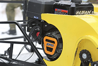 Буксировщик оснащен 4-х тактным двигателем мощностью 15 л. с., достигающий скорость до 40 км/ч. Это позволяет быстро перевозить груз до 300 кг в санях и на специальной багажной площадке мотобуксировщика. Объем двигателя составляет 420 кубов.