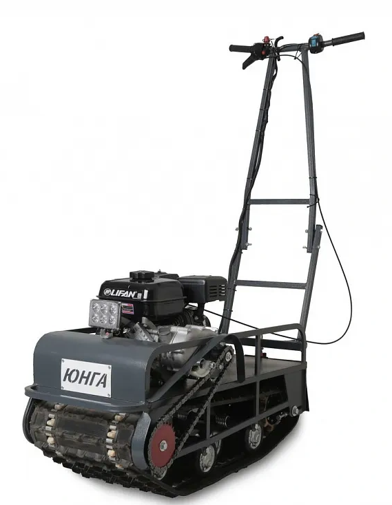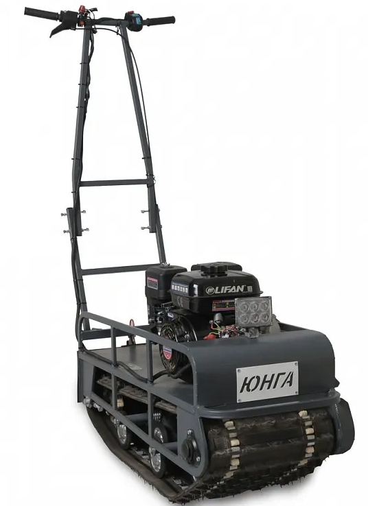 Компактный мотобуксировщик с узкой гусеницей, ширина которой — 380 мм.