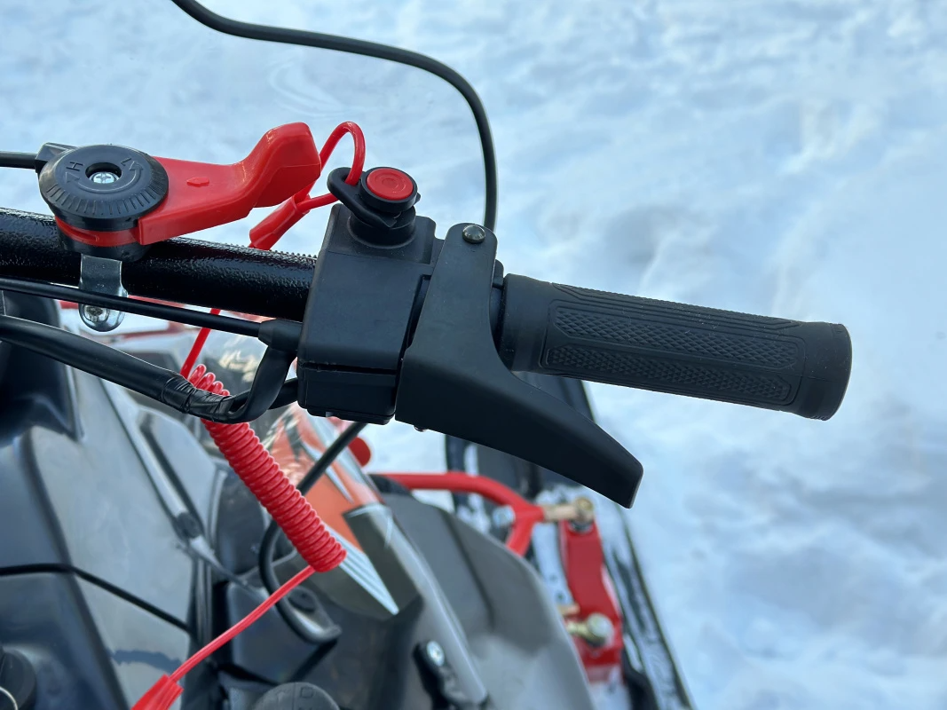 Руль снегохода IKUDZO, имеет приятные, эргономичные ручки с подогревом, а также современные блоки управления. Спинка пассажира также оборудована подогревом ручек пассажира и имеет удобную геометрическую форму. Современная панель приборов, имеет множество функций, включая показания уровня топлива, скорости, пробега, температуры двигателя и множество других функций.