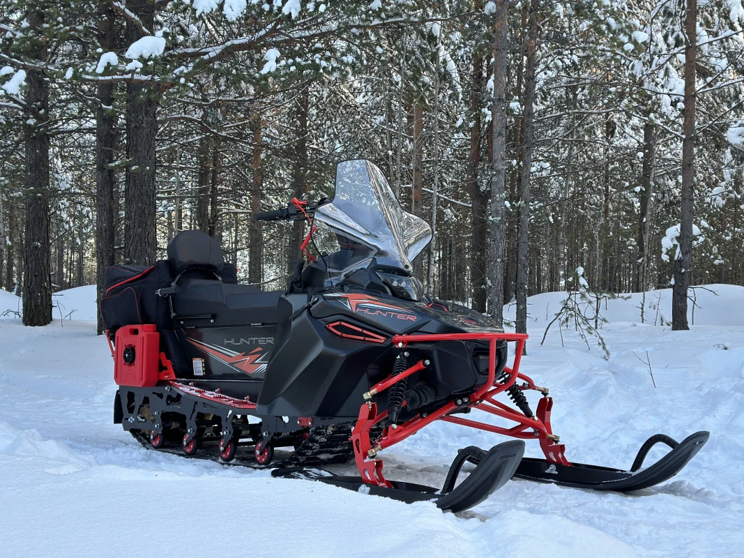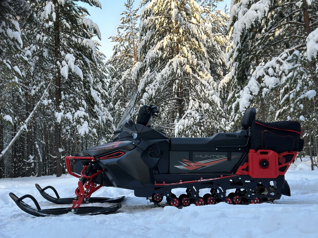 Снегоход IKUDZO HUNTER — утилитарно-туристическая машина с максимально комфортным размещением райдера и пассажира, он хорош как и в дальнем путешествие, так и при перевозке грузов.