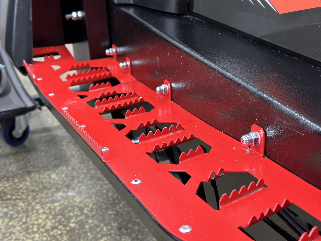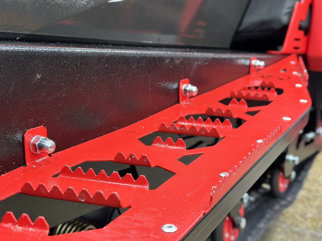 Подножки снегохода сделаны так, чтобы не набивался снег и ваши ноки уверенно держались благодаря специально созданным выступам.
