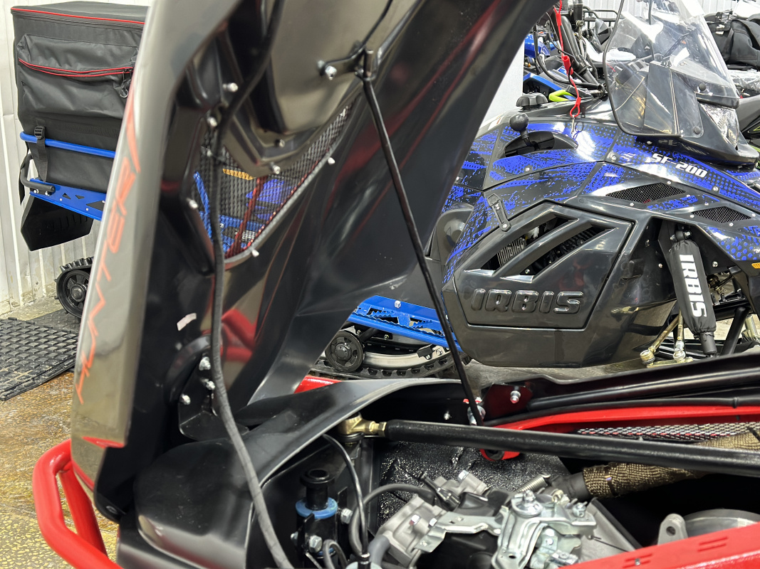 Капот из высококачественного, морозостойкого пластика, состоит из нескольких составных частей, что позволяет без проблем, получить доступ к любым узлам снегохода для обслуживания. А также, в случае повреждений вам достаточно заменить отдельный элемент, что значительно снижает стоимость обслуживания.
