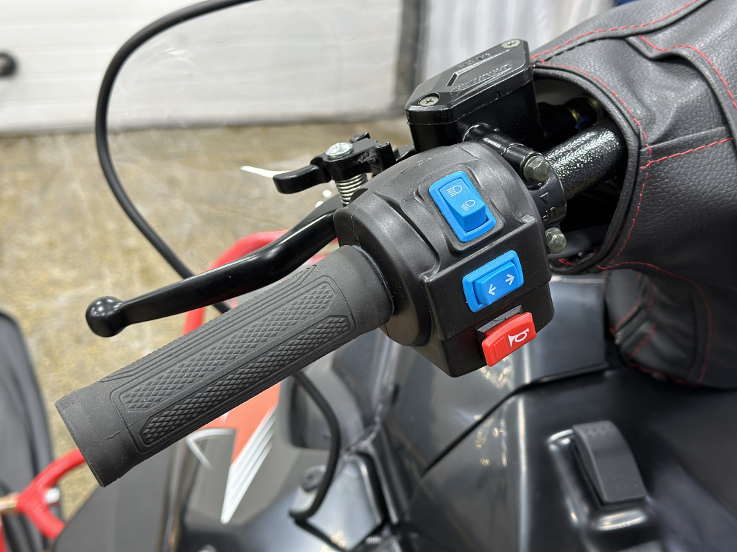 Руль снегохода ИКУДЗО, имеет приятные, эргономичные ручки с подогревом, а также современные блоки управления.