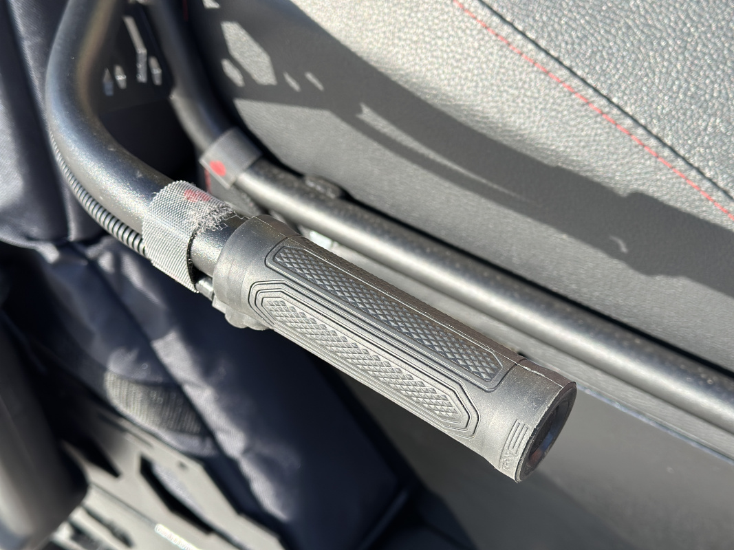 Руль снегохода IKUDZO, имеет приятные, эргономичные ручки с подогревом, а также современные блоки управления. Спинка пассажира также оборудована подогревом ручек пассажира и имеет удобную геометрическую форму. Современная панель приборов, имеет множество функций, включая показания уровня топлива, скорости, пробега, температуры двигателя и множество других функций.
