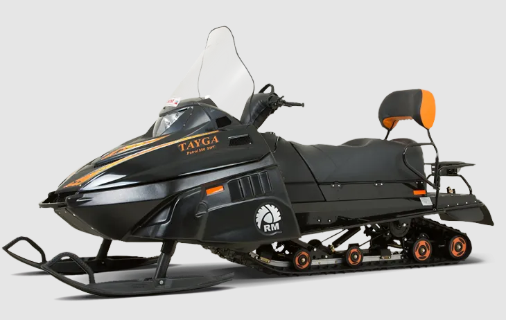 Снегоход TAYGA Patrul 550 SWT комплектуется максимально широкой гусеницей 600 мм. Задняя регулируемая подвеска с пружинами кручения в сочетании с такой гусеницей обеспечивает высокую проходимость и устойчивость снегохода и гарантирует максимальную работоспособность в самых суровых условиях зимнего бездорожья.