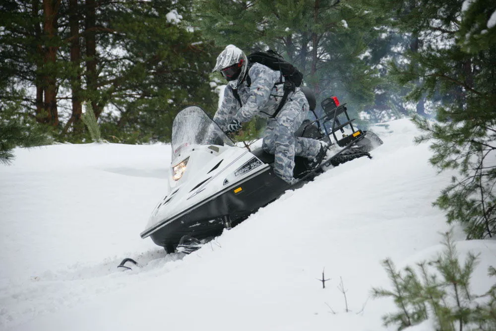 Многоцелевой утилитарный снегоход класса WideTrack с хорошим соотношением цены и функциональности. Отличительная особенность модели – практически идеальная сбалансированность. Благодаря низкому центру тяжести общий центр масс совпадает с приводной осью снегохода.