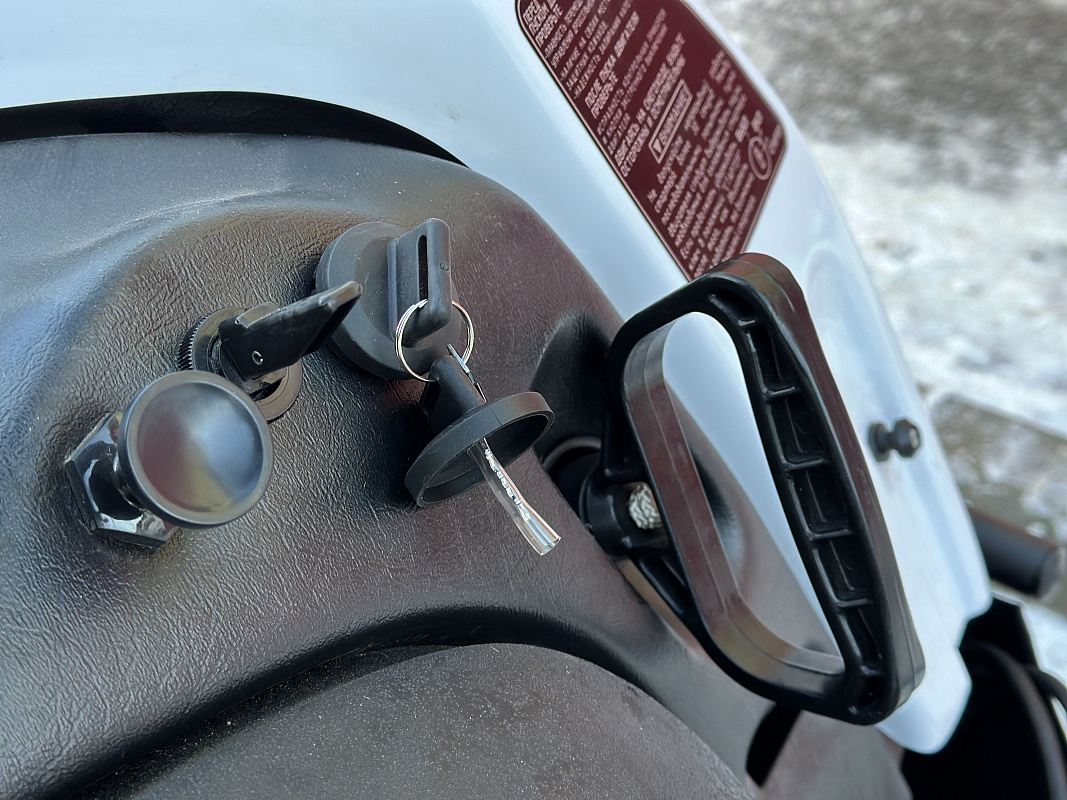 Модель оснащена двухуровневым сиденьем, обогревом рукояток и курка газа, механическим тормозом, фаркопом.