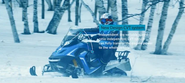 Снегокат имеет вариатор - системой передач, которая позволяет без рывков разгоняться и двигаться на постоянной скорости. Также вариатор уменьшает эксплуатационный срок деталей и повышает комфорт во время езды.